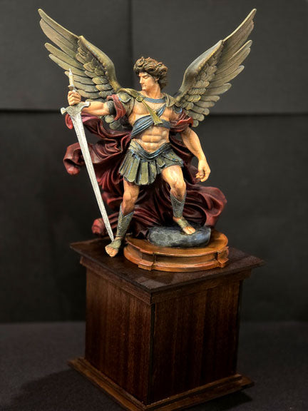 St. Michael the Archangel Statue on Wooden Pedestal, Hidden Compartment